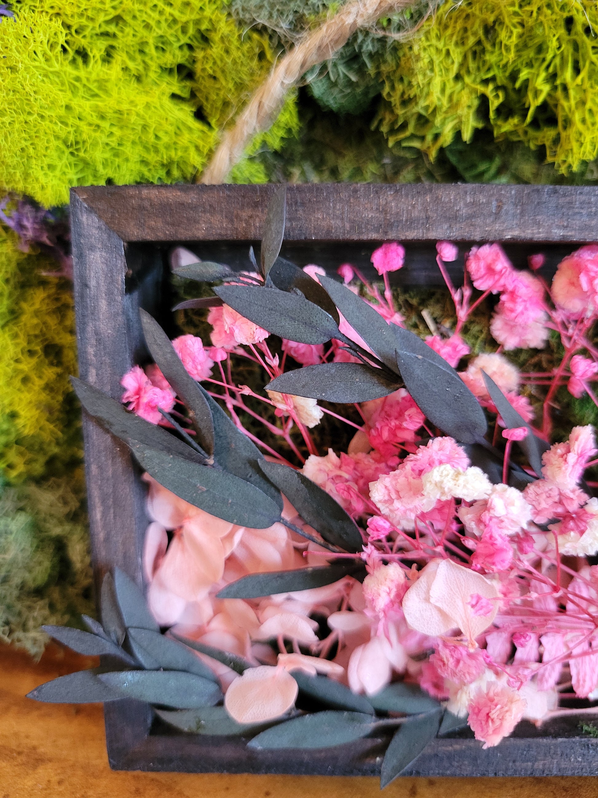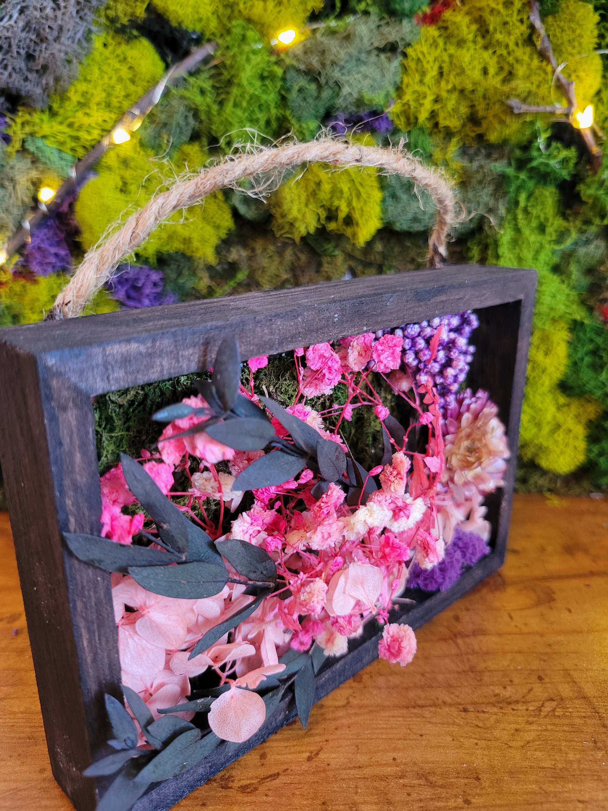 This piece combines romantic florals with dramatic styling for a truly eye-catching display. Each shadow box is carefully handcrafted with preserved flowers, making every creation unique in its arrangement and color variations. - 26