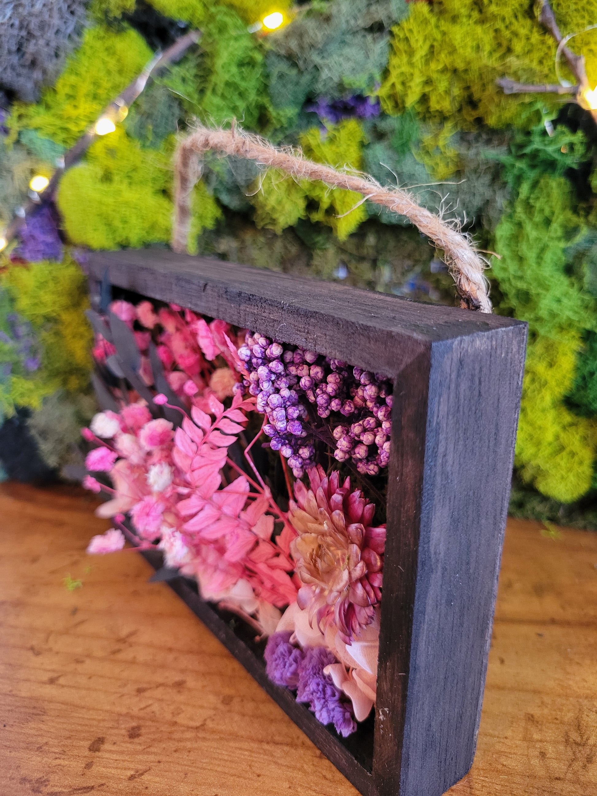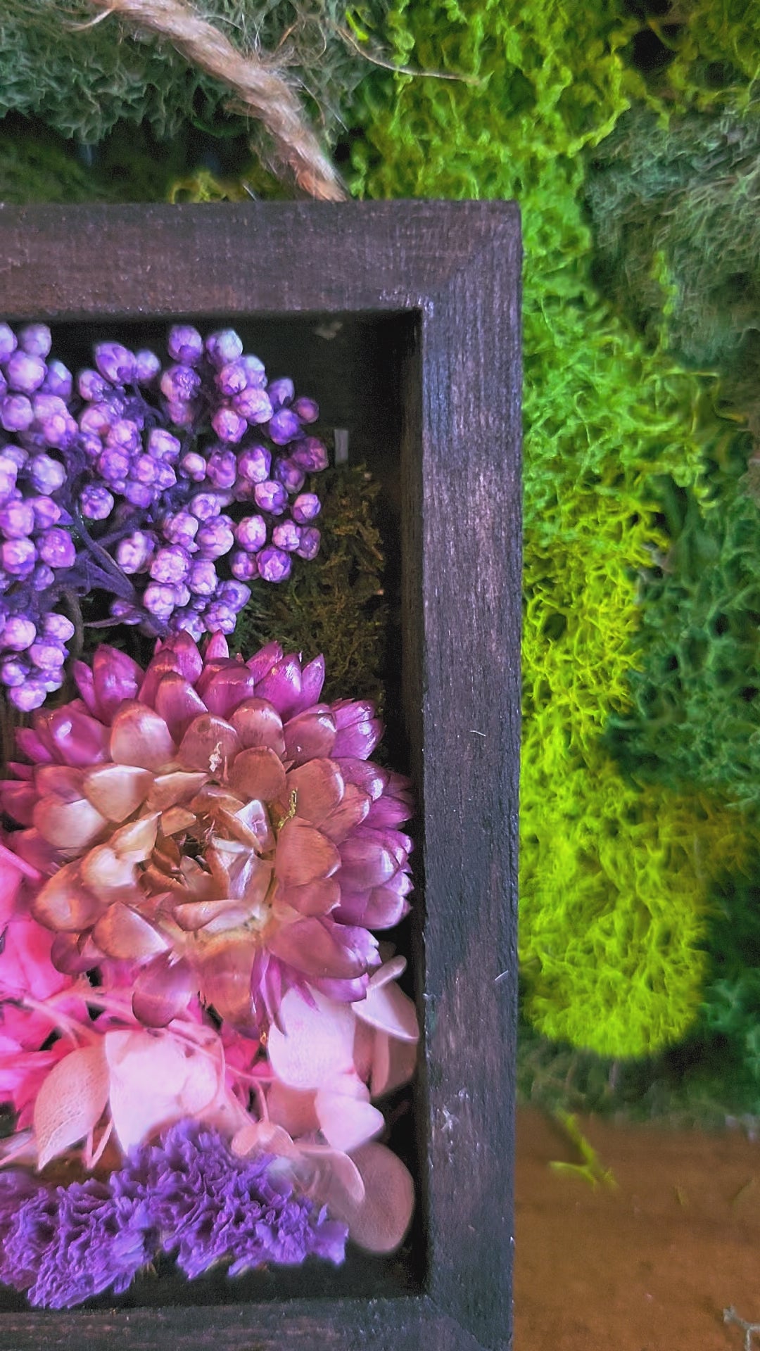 Pressed Flower Shadow Box | Pink Purple Botanical Wall Art